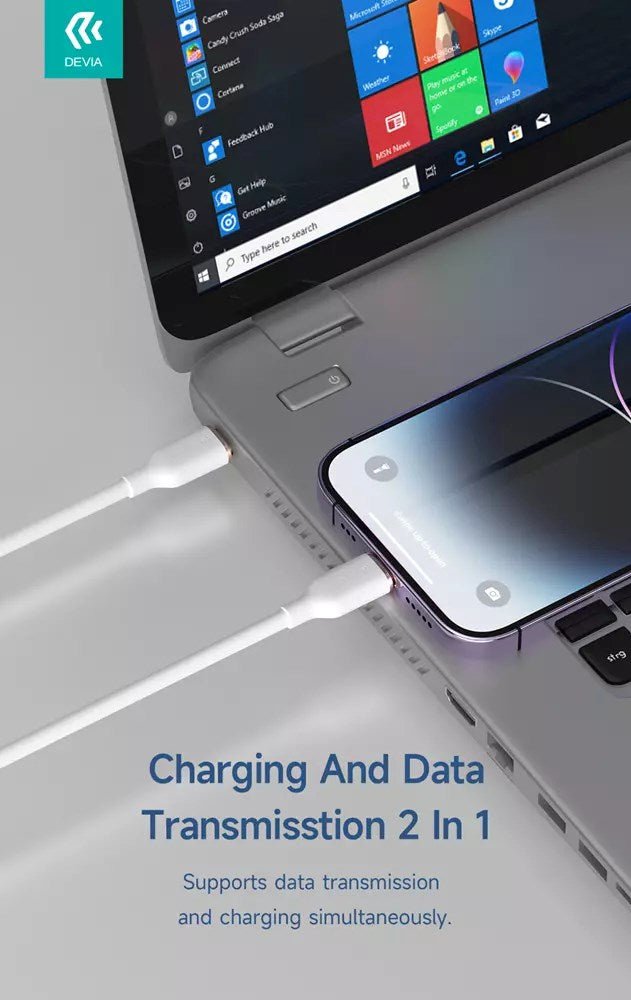Devia - 1.2m (27w) Type C to Non-MFI Lightning Silicone Cable - Multiple Colour available