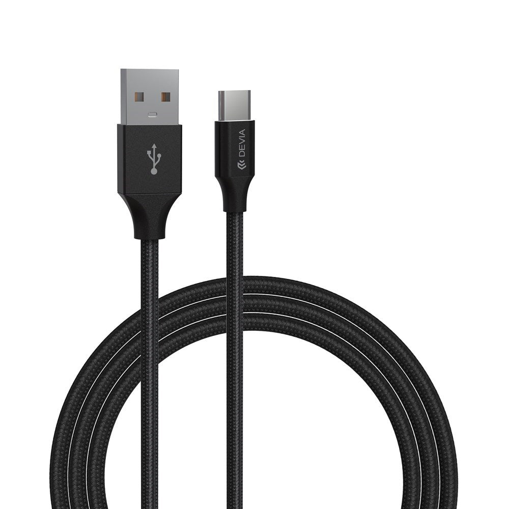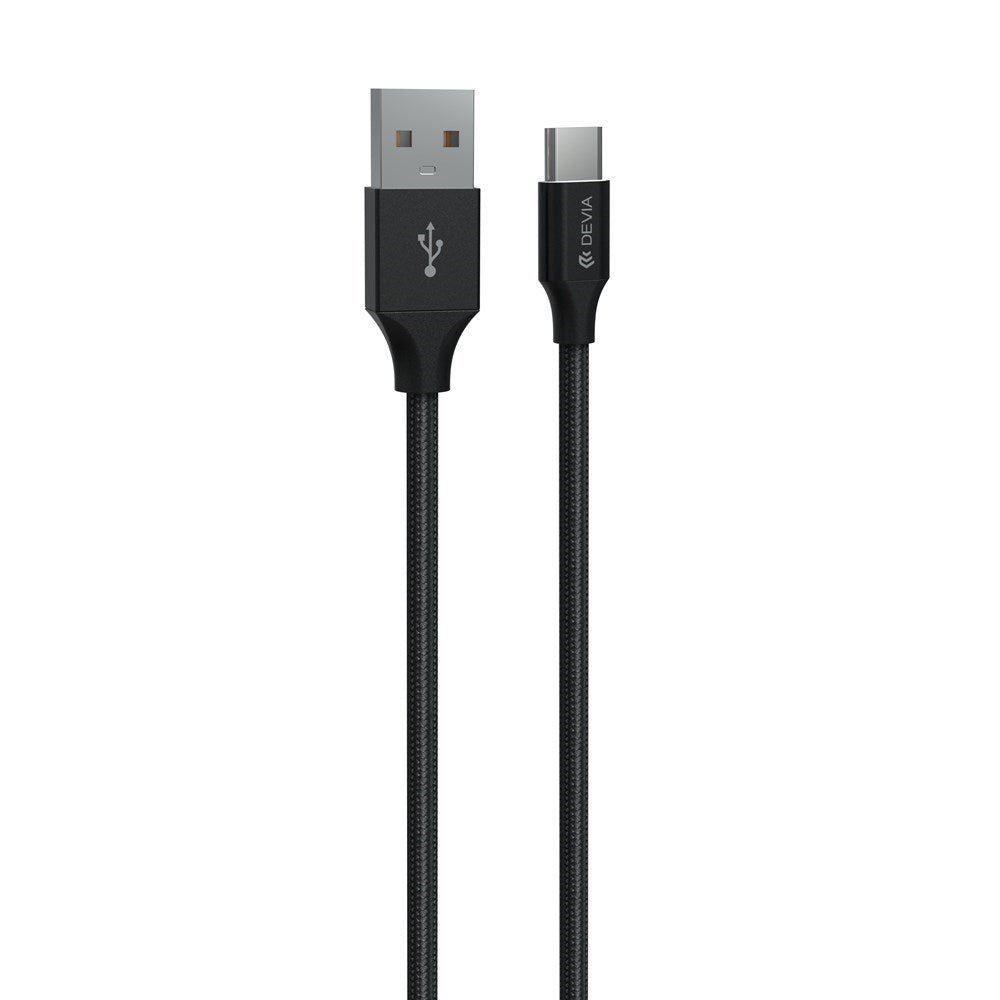 Devia - 1m (2.4A) Mesh Armour USB to Type C Cable - Black