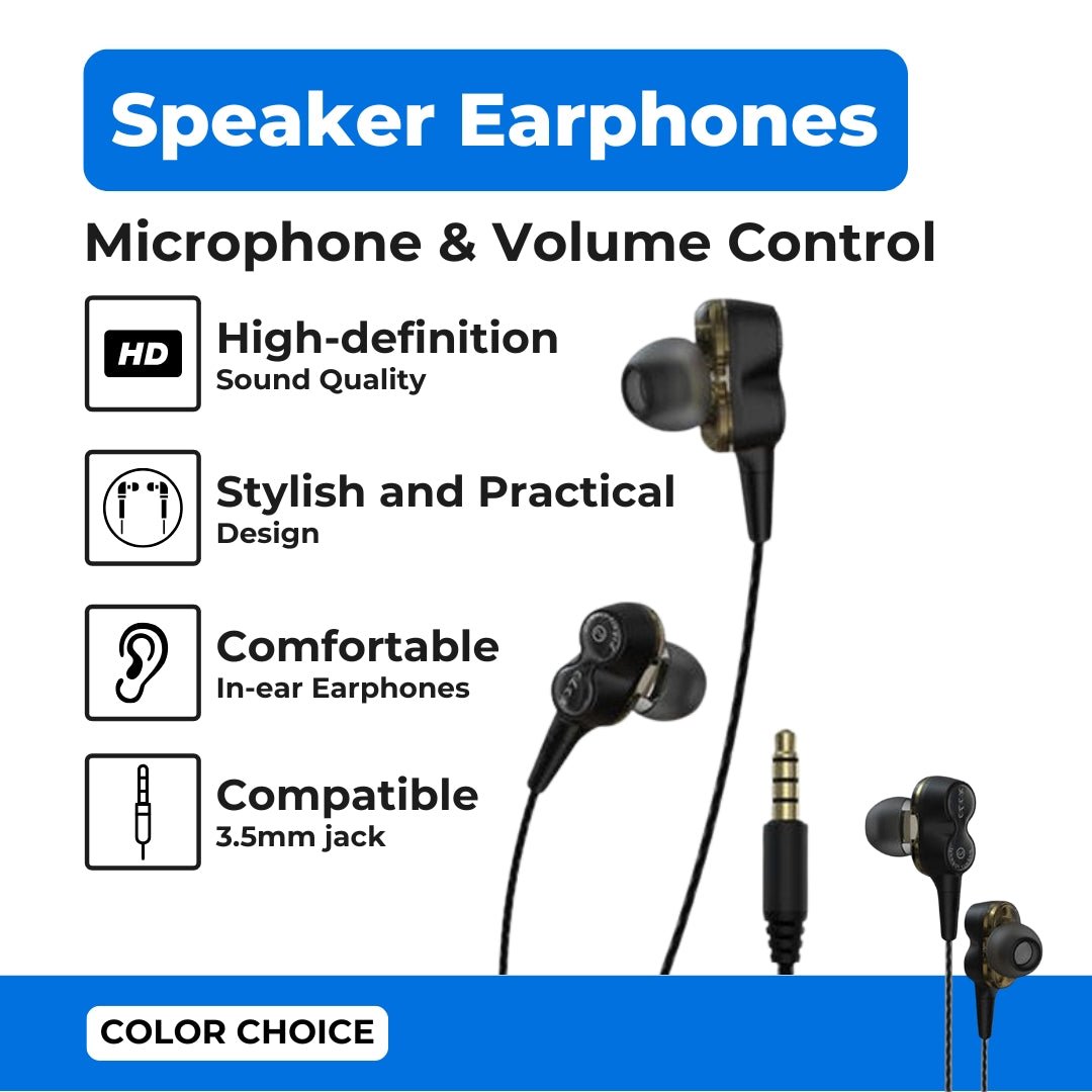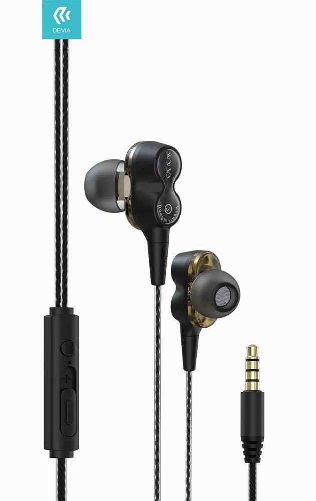 Devia - 3.5mm Dual Metal Speaker Earphones with Microphone & Volume Control - Black