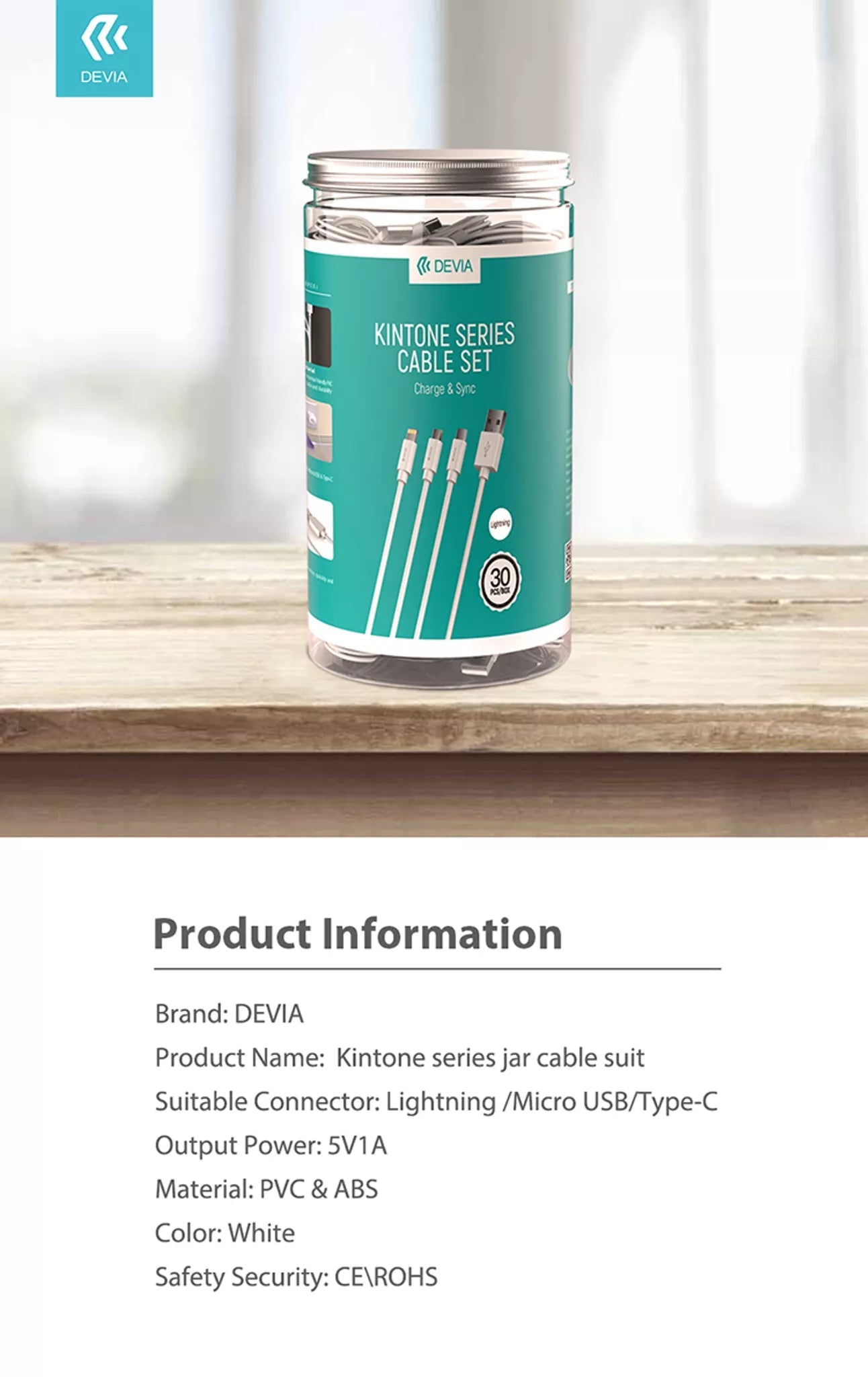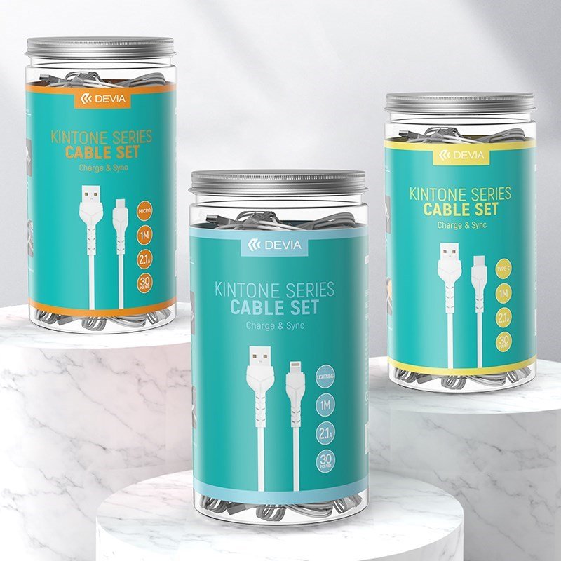 Devia - Bulk Loose - Pack of 30 Kintone - 1m (2.1A) USB to Type C Cable - White