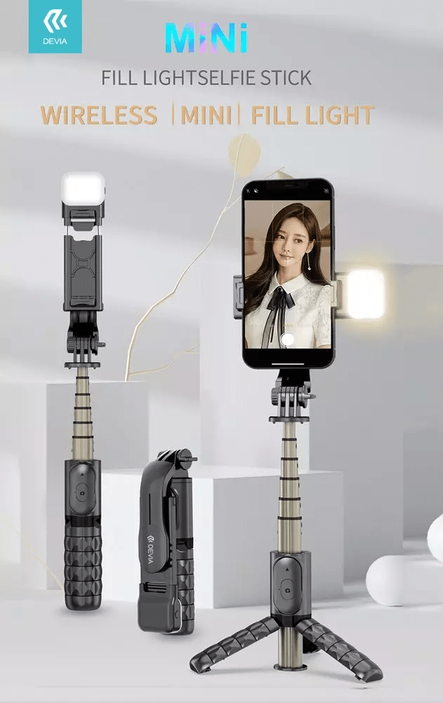 Devia - Multi Function Portable Bluetooth Selfie Stick, Tripod & Light Bar - Black