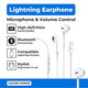 - Wide Compatibility: In-ear Earphones Wired Headphones, Lightning Devices.